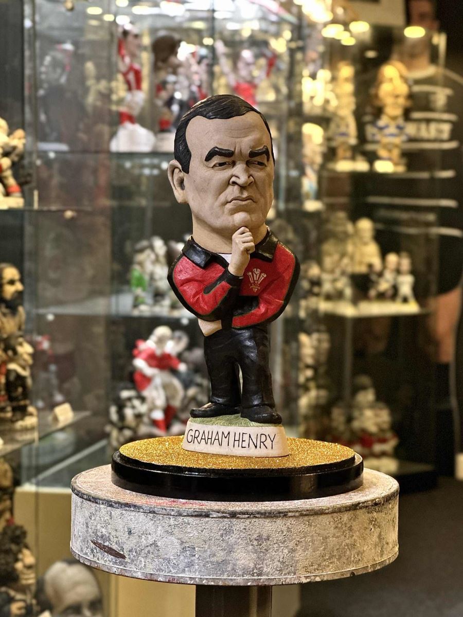 It wasn’t long before Graham had proved his worth by almost reversing that record defeat in Pretoria, coming very close to beating the Springboks in Wembley. The following weekend, my father and I were in the stand at Sardis Road when Graham Henry made an appearance. As he climbed the stairs to his seat, he received a standing ovation and the decision to make a Grogg of him was made there and then. I based his pose on Rodin’s famous statue “The Thinker” as Henry is a superb tactician, renowned for his immense knowledge of the game.