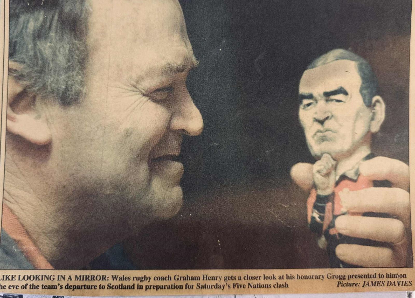 By the time the five nations rolled around the Graham Henry Grogg was finished and we presented the first figure to him on the eve of the Welsh team’s departure to Edinburgh. I was pretty nervous, but Graham was delightful and took it all in good part, especially as I discovered later, he had no idea what a Grogg was! A few weeks later his wife Raewyn appeared in the shop. Fascinated by the Grogg she had come to find out what Groggs were all about. It was the beginning of a long and valued friendship.