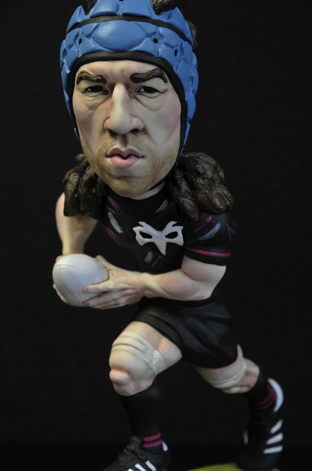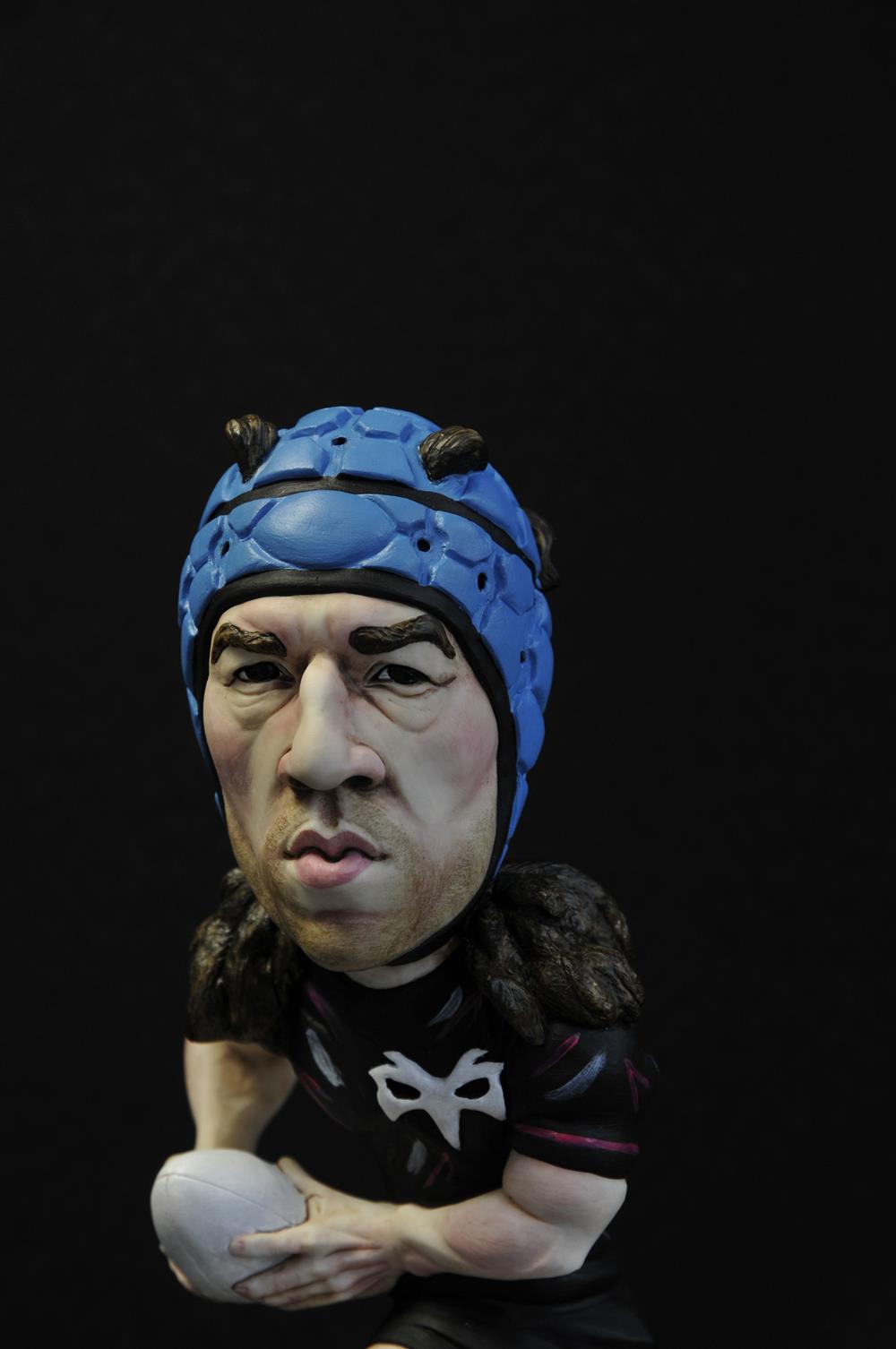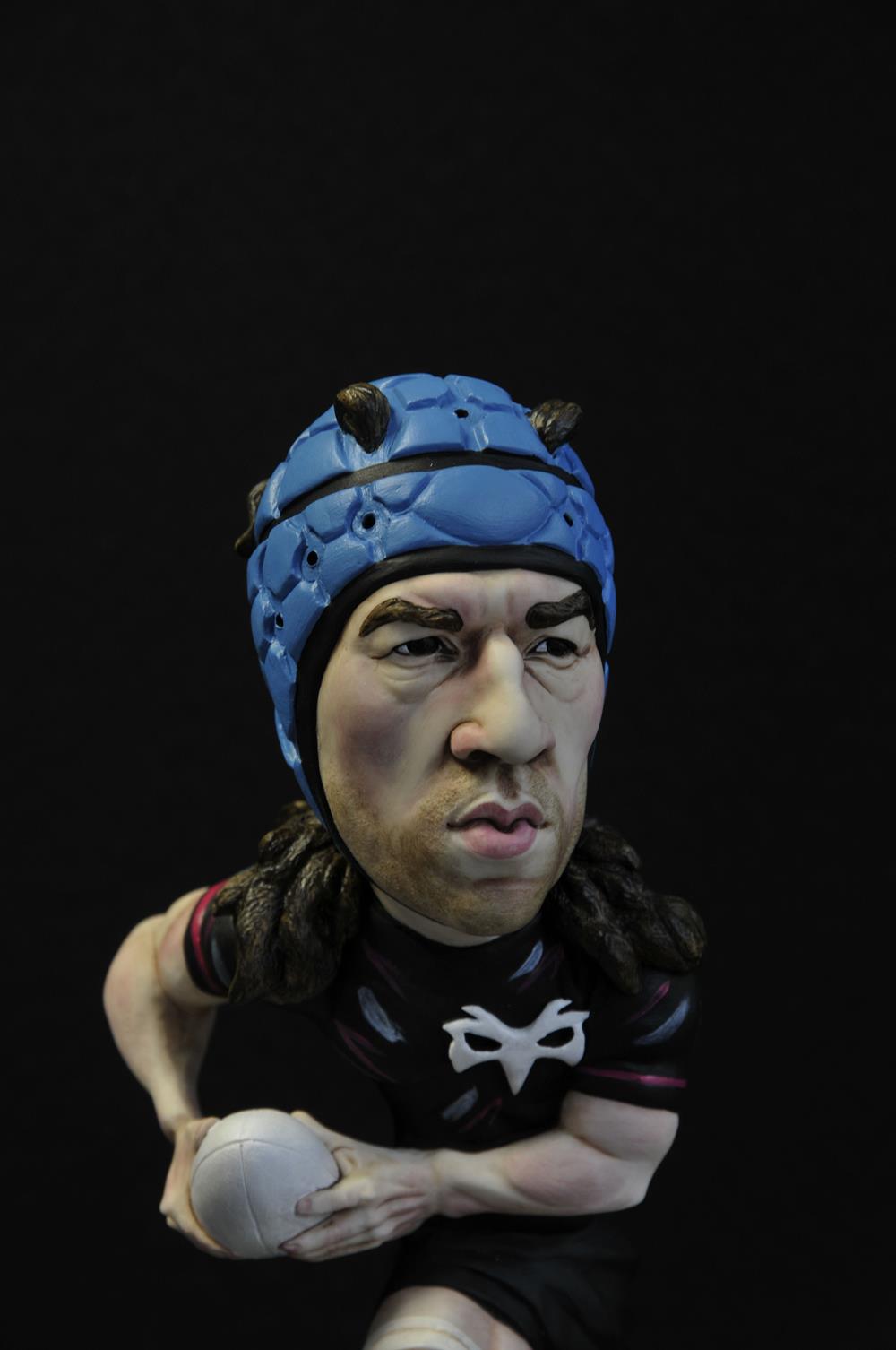At the end of season 24/25 Trebanos, Ospreys, Wales and British and Irish Lions legend Justin Tipuric hung up his boots for good. He had already retired from international rugby being capped 93 times for his country and representing the British and Irish Lions on 12 occasions. He continued for two more seasons for the Ospreys playing some of the best rugby of his life prompting calls for his return to international duty. During this time Justin decided to let his hair down quite literally and the sight of him tearing down the pitch with his hair poking out of his famous blue scrum cap caught my eye. When I heard from a very trustworthy source that Justin was keeping his new look as he was worried that cutting his hair would impact on his strength (a reference to the Samson story from the Old Testament) I was inspired to make this new limited edition Ospreys figure.