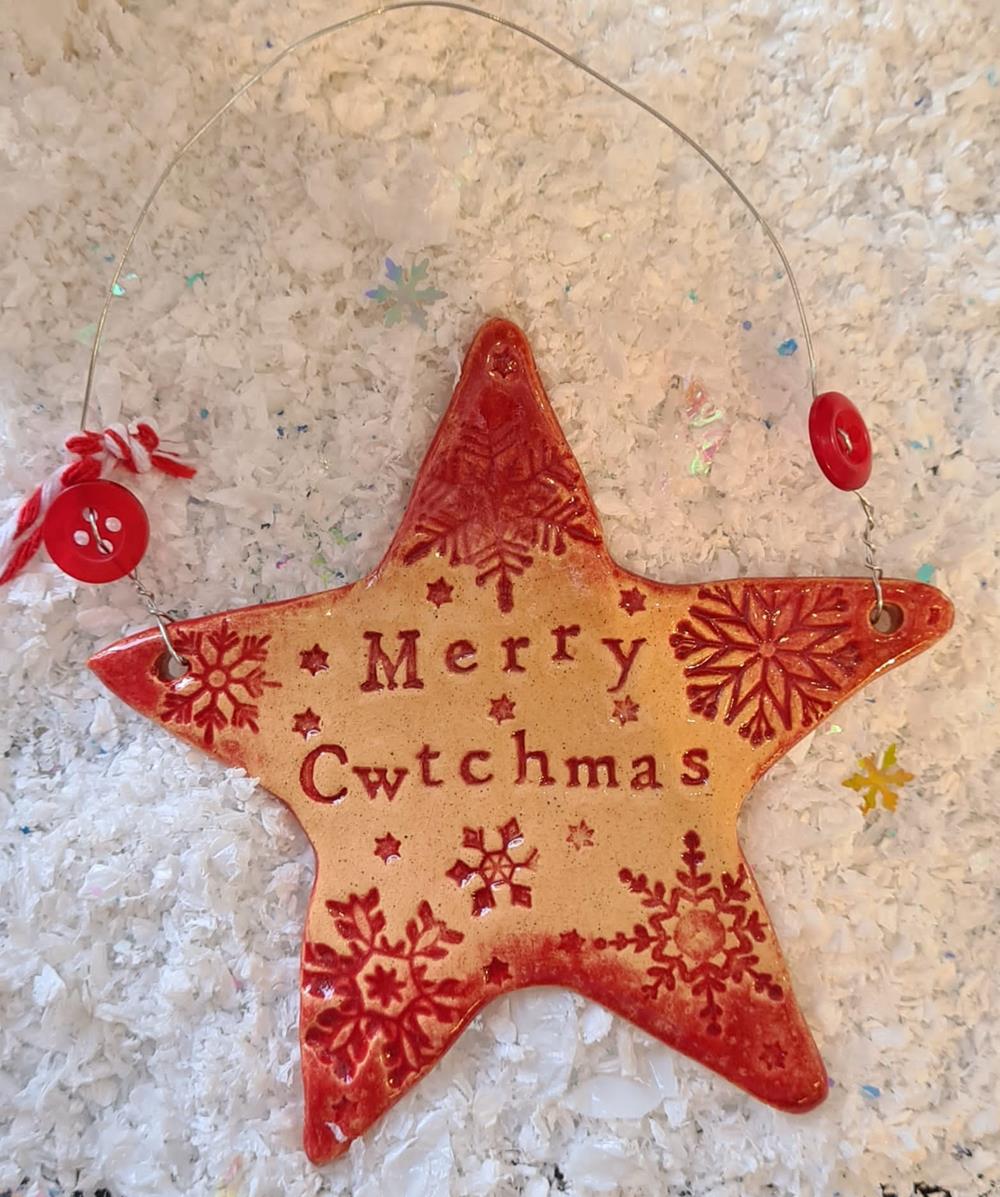Handmade in Wales by Love & Lovelier ~ Ceramic Star Christmas Tree Decoration ~ Approx size 8.5cm x 8.5cm.