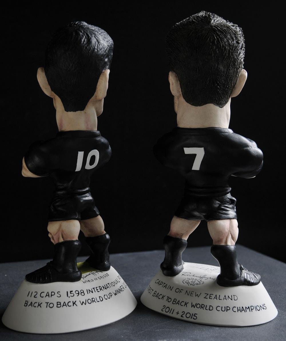 Richards notes: In October 2015 when New Zealand retained their World Champions title they made history becoming the only country to win back to back World Cups. Incredibly although being ranked the world’s best team since the competition began it took nerves of steel and cool heads to become the first team to achieve the elusive goal of double World Champions. Although all involved would say it was a team effort two names inevitably came to mind when thinking back to this momentous achievement. Captain Fantastic Richie McCaw and the peerless Dan Carter. When the final whistle blew at Twickenham last October I immediately thought of these two All Black legends standing back to back with the world cup but I also knew it would be technically too difficult to produce. However, the idea wasn’t one I was ready to ignore and the new Richie McCaw was made always with his partner Dan Carter in mind. It has taken me a year to complete our tribute to one of the greatest rugby teams we have ever seen but it was something I felt had to be done. Man of the Match on the day, the new Dan Carter can now stand back to back with his captain. The figure also bears a commemorative inscription on the back base celebrating Dan’s record breaking career.