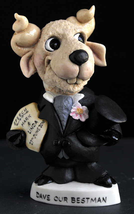 Our Bestman Sheep is a fabulous solution to your Wedding present problems! Can also be used for Father of the Bride/Groomsmen/Ushers, if no ‘Speech’ title is needed on the scroll please let us know in the notes section of the checkout. Personalise him with your names and date of the wedding and his name on the base, for example: