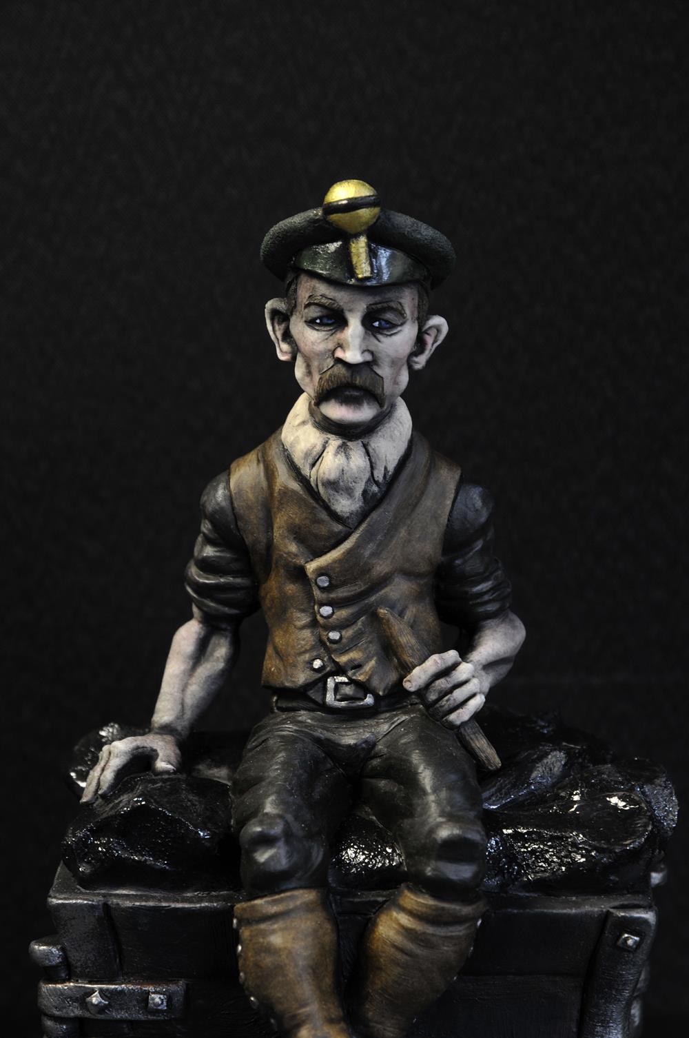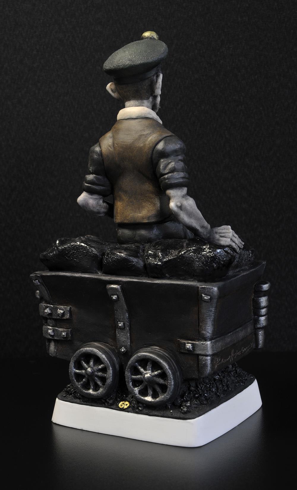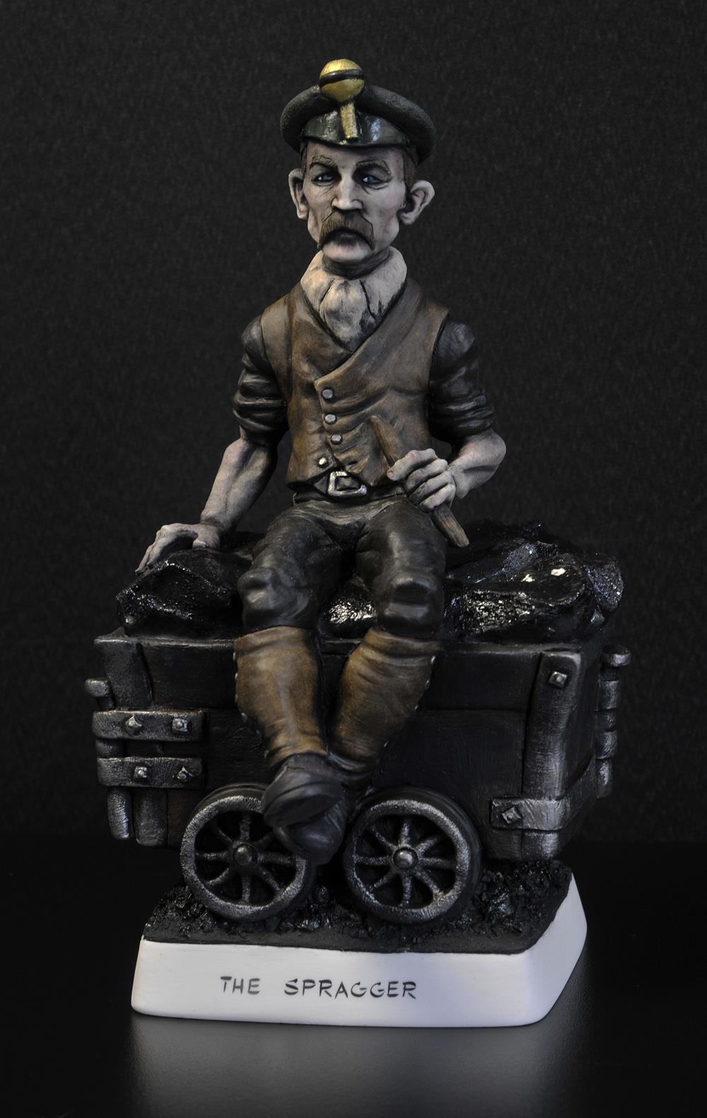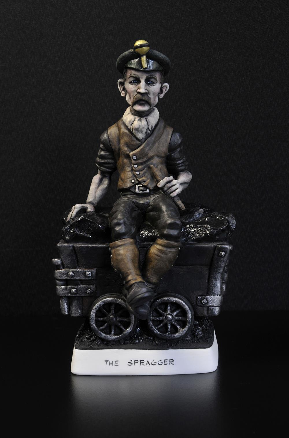 The latest addition to our ‘Land Of My Fathers’ Mining Collection is The Spragger. When Carly tasked me with making a miner with a dram, I immediately remembered my father talking about Spraggers. Their specific role was to stop the drams laden with the “Black Gold” by jamming a piece of metal or wood between the spokes of the dram wheels. It was another extremely dangerous occupation often leading to accidents and injury. This was common practice in the early part of the coal mining boom in the Welsh valleys which thankfully disappeared as the mines became more mechanised.