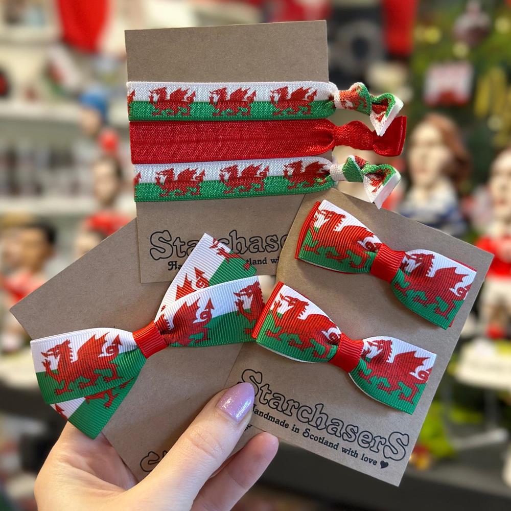 Choose from 1 x Bow hair tie, 2 x bow clips or 3 x Welsh hair tie set.